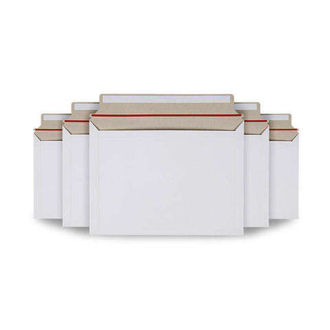 Personalizado A3 A4 A5 A6 8x6 tamaño rígido Mailer autosellado foto documento Mailers Stay Flat cartón blanco envío sobres embalaje